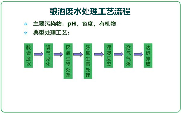 寧波鄞州區(qū)咸祥鎮(zhèn)釀香酒業(yè)公司主要釀造高檔白酒,在白酒釀造過程中會產(chǎn)生各種釀造廢水,其中主要污染物有PH、色度、有機物等,廢水的可生化性比較高,且含COD的濃度也比較大,我公司針對該公司釀酒廢水的特點,專門設(shè)計了“厭氧+好氧”的組合生物處理工藝,首先去除廢水中的大部分COD與有機物,然后再采用“混凝+氣浮”的物化處理工藝,來進一步去除廢水體中的懸浮物和COD,最終保證該公司排放的廢水穩(wěn)定達標。
